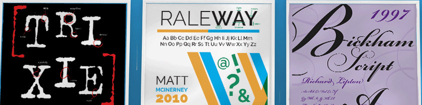 While designing, the goal was always to keep the differences between the three fonts clearly visible. Trixie changed a lot throughout the iterations but still maintained the grungy style of the font. For Raleway, there was a clear idea that I wanted to develop with the letter w being split in half. Sadly the intersection of the W wasn’t as perfect as it seemed so I instead chose to just duplicate the W in the center. This limited the space for other content though so In the end I moved the W to the side and switched to an uncentered design. Bickham script is a font with a lot of personality and Ligatures so I knew from the beginning I had a lot to work with. I used the name of the font as the main focal point and the ligatures and extra elements as accents to the main layout.
