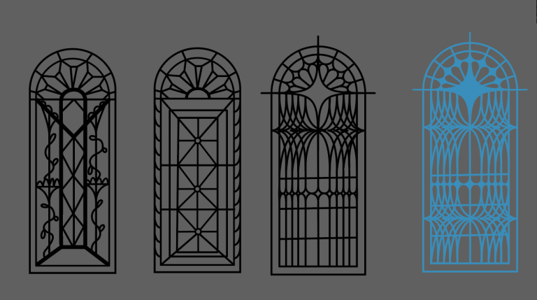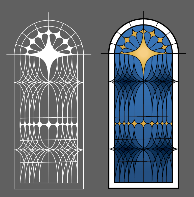 While working to create typographic patterns as a mini assignment in my typography class, I fell down a rabbit hole of pattern design and landed on stained glass design. I was immediately hooked. Getting inspiration from church windows and old stained glass catalogs I decided to try my own hand at creating stained glass window designs.